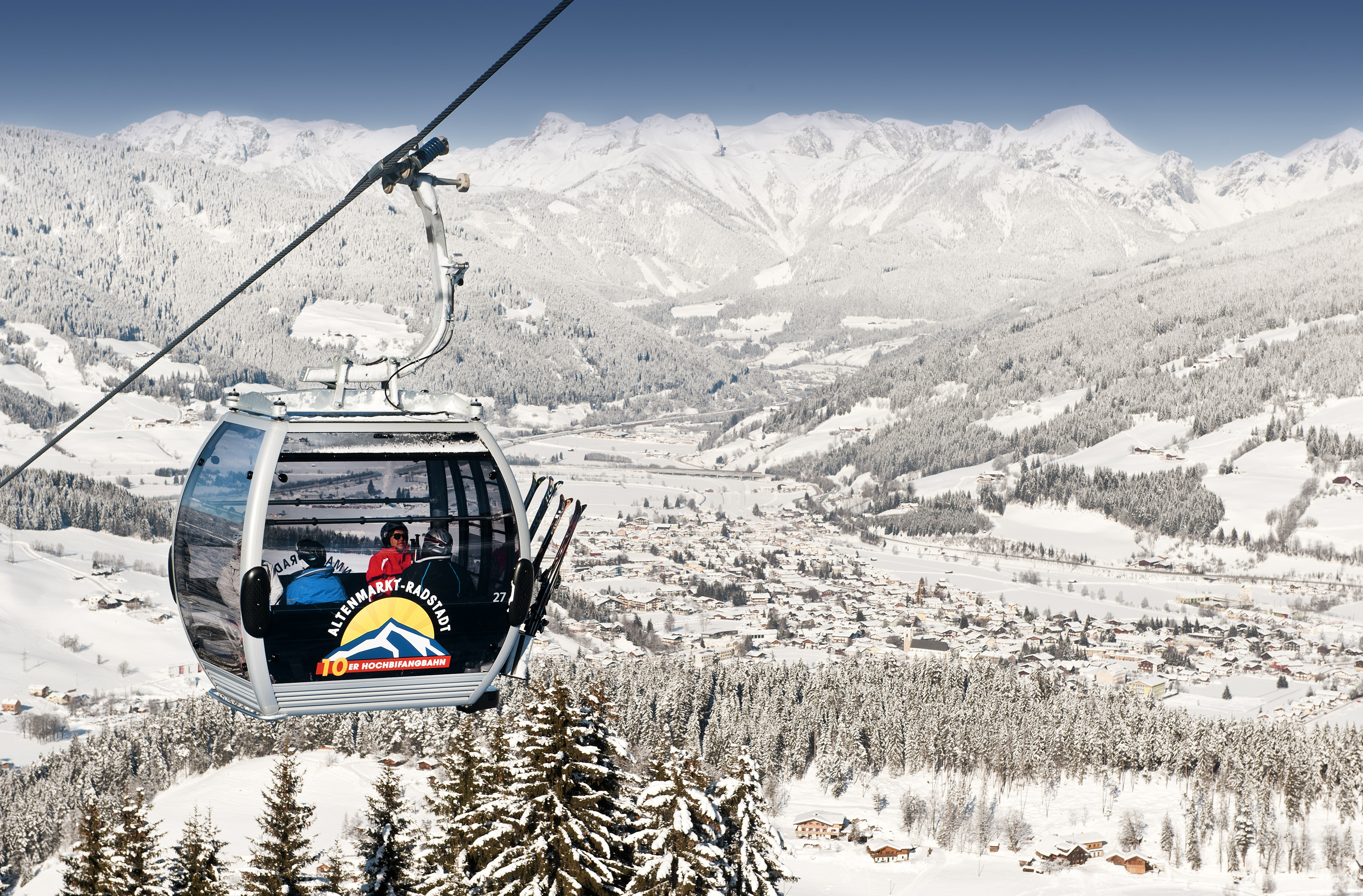 Radstadt-Altenmarkt eine verlockende Alternative. Es befindet sich in direkter Nachbarschaft und verwöhnt seine Besucher mit herrlich breiten und übersichtlichen Pisten, faszinierenden Ausblicken auf zahlreiche Gipfel wie Hochkönig, Tennengebirge oder Dachsteinmassiv und der mit sechs Kilometern längsten beleuchteten Rodelbahn im Salzburger Land.