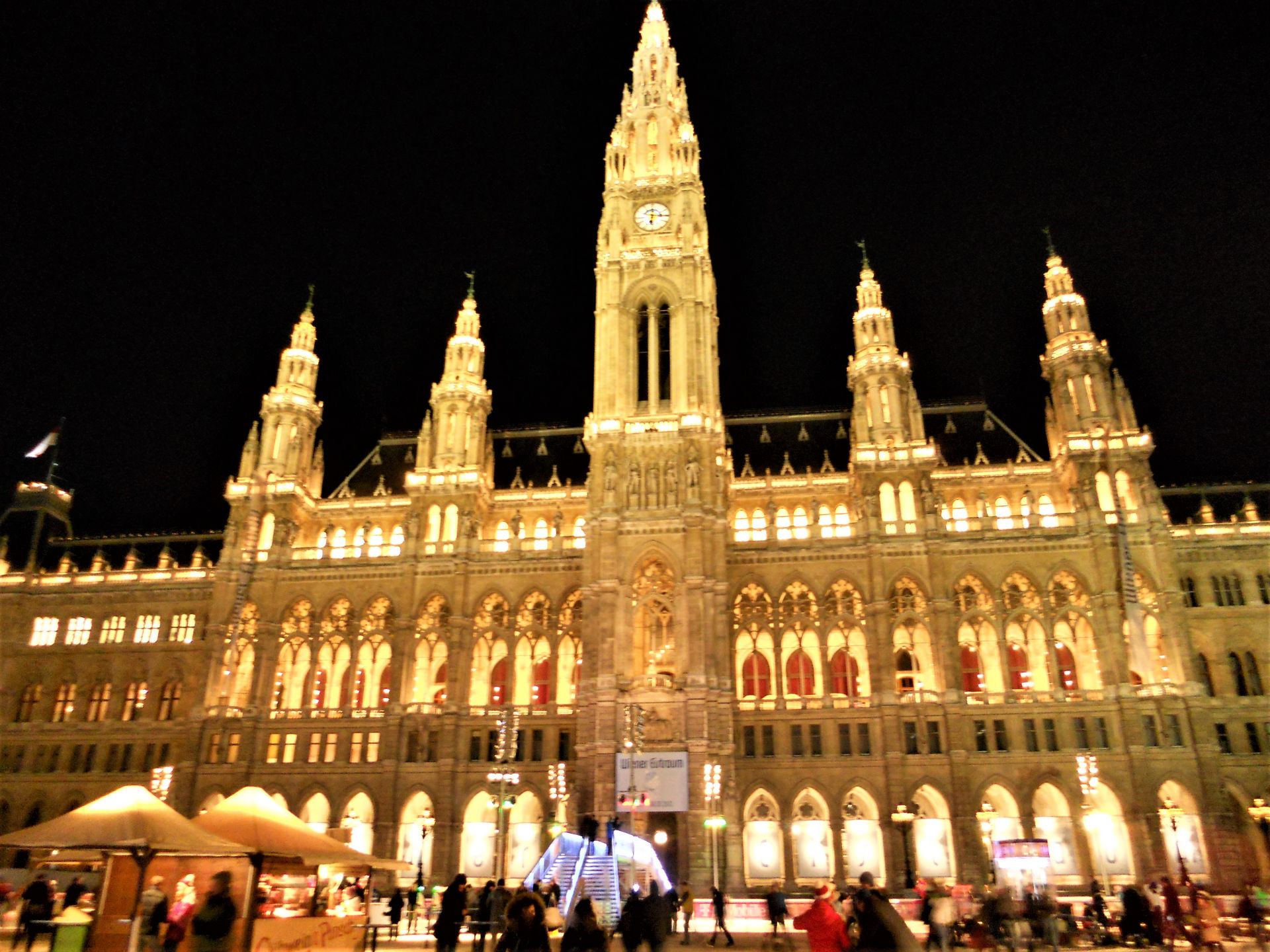 Wiener Rathaus bei Nacht.