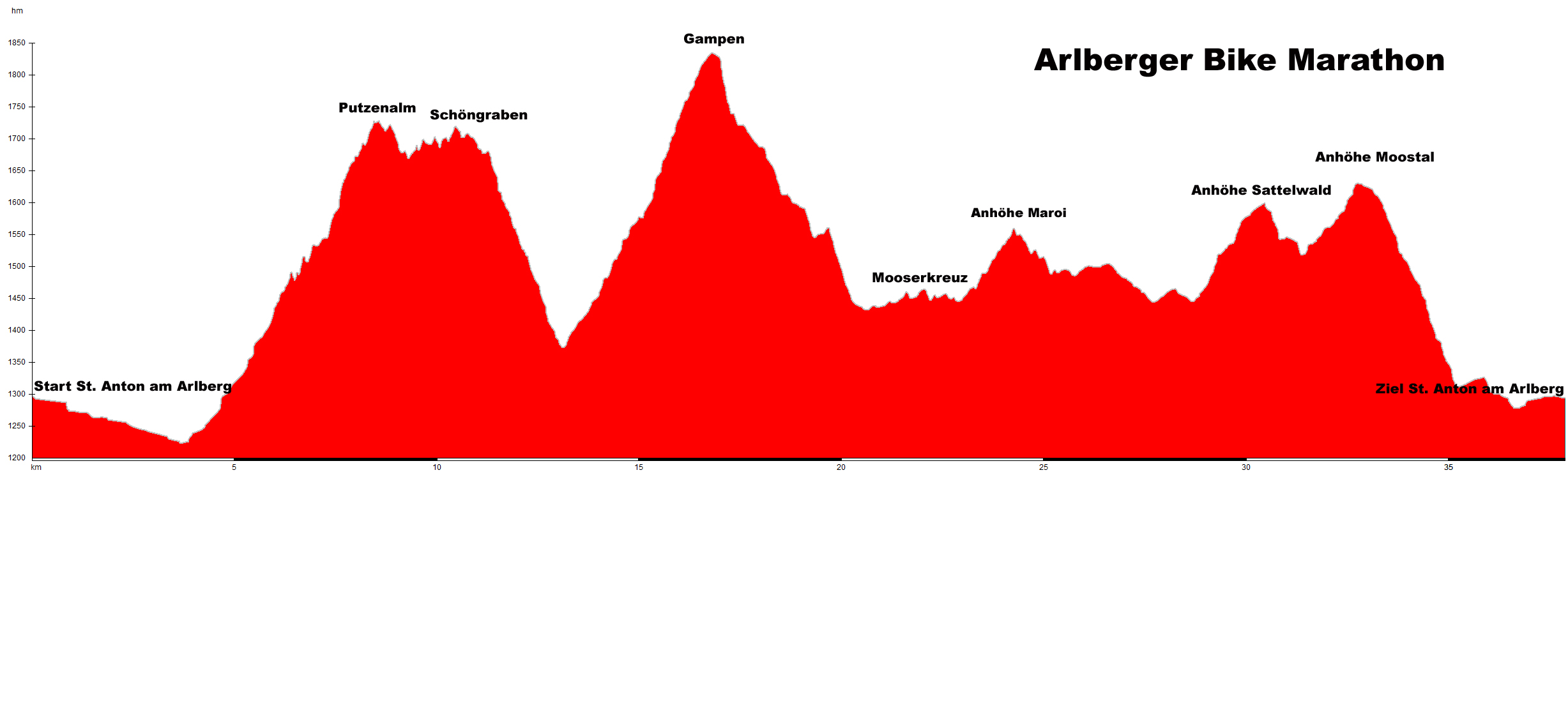 Streckenprofil des Arlberger Bike Marathon.
