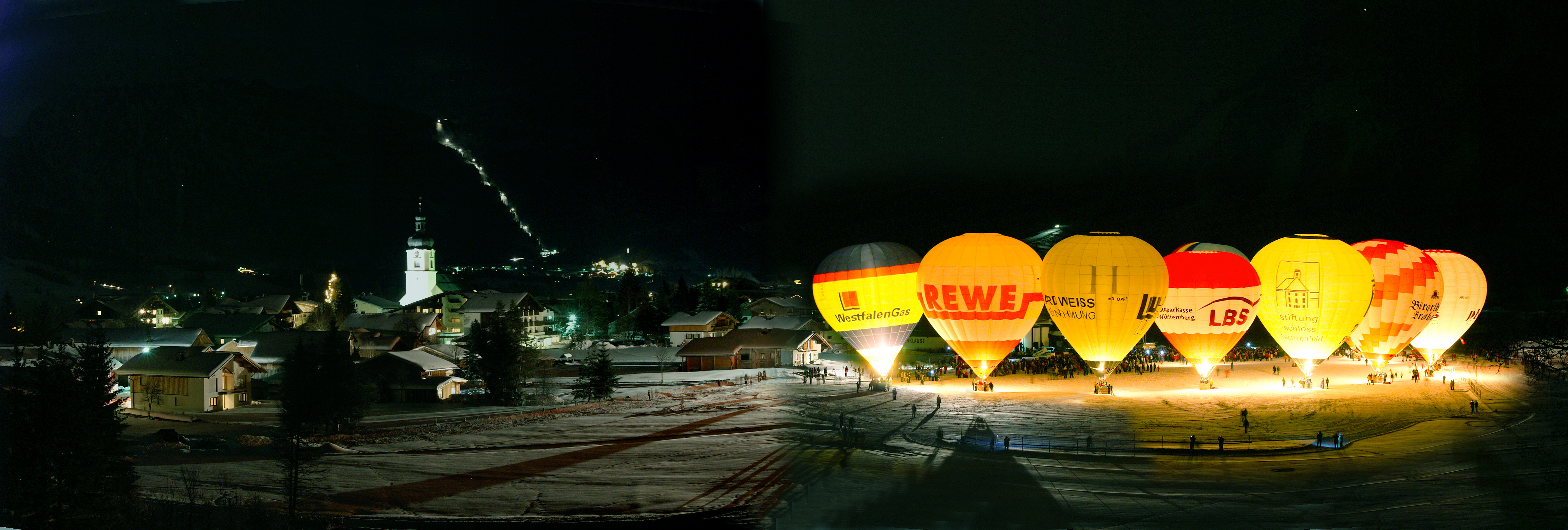 Highlight beim Internationalen Ballonfestival im Tannheimer Tal ist das Ballonglühen bei sanfter Walzermusik.