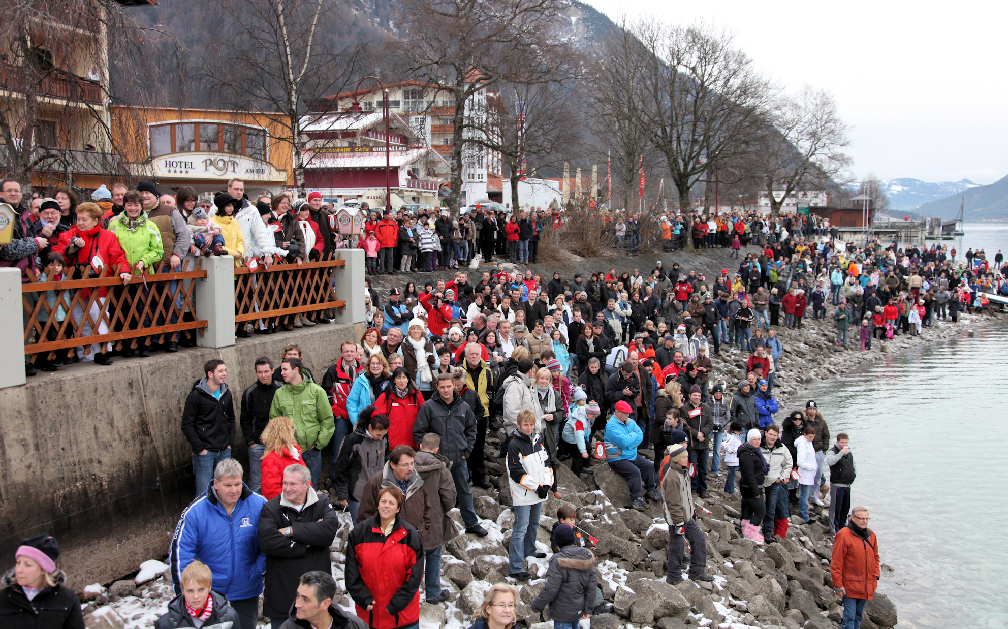 Das Silvesterschwimmen hat schon Tradition am Achensee. Rund 3000 Besucher säumen jedes Jahr das Ufer und feuern die Schwimmer begeistert an.
