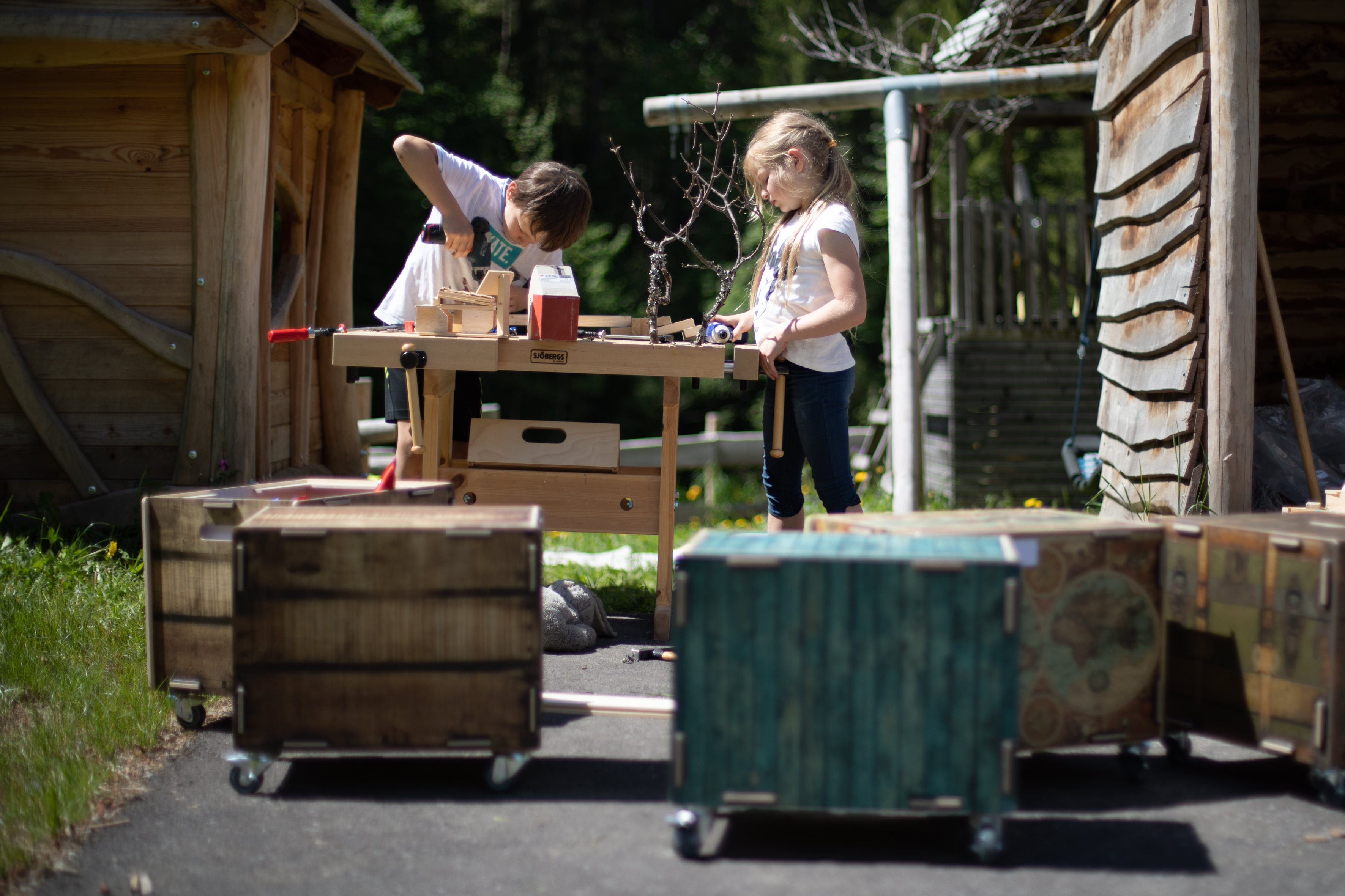 In der Berghaus Kinderwerkstatt treffen sich die Youngsters ab sechs Jahren, finden Ferienfreunde und können ihrer Kreativität freien Lauf lassen. Geöffnet ist das Bastelparadies immer nachmittags außer samstags und mittwochs von 15 bis 18 Uhr. Die Kinderbetreuung hat nicht nur tolle Ideen, sondern auch eine helfende künstlerische Hand sowie einen geschulten Blick auf das Geschehen in der Gruppe. Die gestalterischen Angebote wechseln zwischen laubsägen, nähen, malen und schleifen. Während der Nachwuchs in der Werkstatt beschäftigt ist, entspannen die Eltern auf der Terrasse oder relaxen in der Sauna. Auf dem nahe gelegenen Kinderspielgelände mit Wasser- und Sandspielplatz können die Jüngsten nach Herzenslust plantschen und matschen. Die Berghaus-Angebote für gemeinsame Familienerlebnisse in Schröcken am Arlberg reichen von Touren durch den Hochseilgarten über Schnupperklettern mit der Bergschule, geführte Familienwanderungen, Bergsee-Bootsfahrten oder Frühstück auf der Ziegenalm.